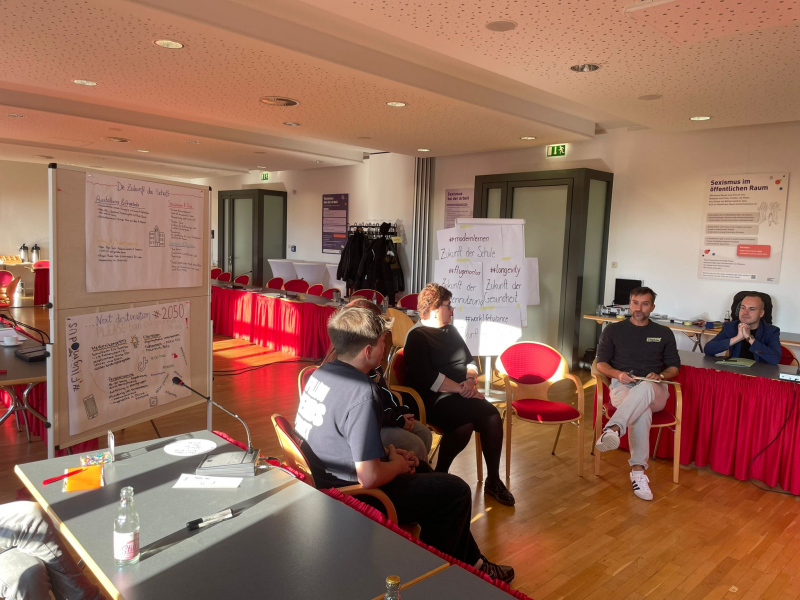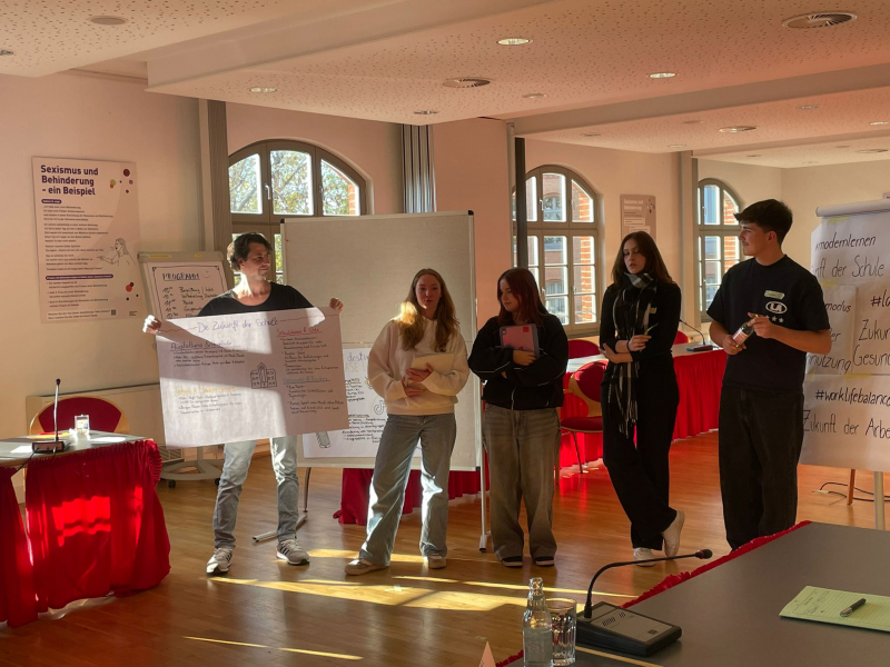Jugend trifft Politik! Jede teilnehmende Klasse entsendete Botschafterinnen bzw. Botschafter, um konkrete Politikforderungen mit unserer Schirmherrin, Petra Grimm-Benne, Ministerin für Arbeit, Soziales, Gesundheit und Gleichstellung in Sachsen-Anhalt, im Ministerium in Magdeburg zu diskutieren.