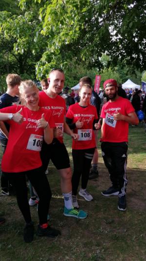 Bei bestem Laufwetter nahmen vier LäuferInnen der GS Gagarin und der SKS Komarow am diesjährigen Firmenlauf als ein Team teil. Ein Fingerzeig, sind doch beide Schulen „STARTCHANCEN-SCHULEN“ und wollen zukünftig noch enger kooperieren. In extra für dieses Event angeschafften Laufshirts mit dem Aufdruck „GS Gagarin / SKS Komarow … läuft!“, kam das Team auf dem 42. Platz (von 108 Teams /„Mixed-Team“), als „Kosmonauten im Orbit“, ein. Eine tolle Veranstaltung, die zur Tradition werden könnte … alle Beteiligten hatten ihren Spaß. Sogar einige Schülerinnen und Schüler feuerten ihre LehrerInnen an, was für zusätzlichen Schub bei den Laufraketen sorgte. Vielleicht finden sich im nächsten Jahr noch mehr Kosmonauten zum „Space Race“ ein.